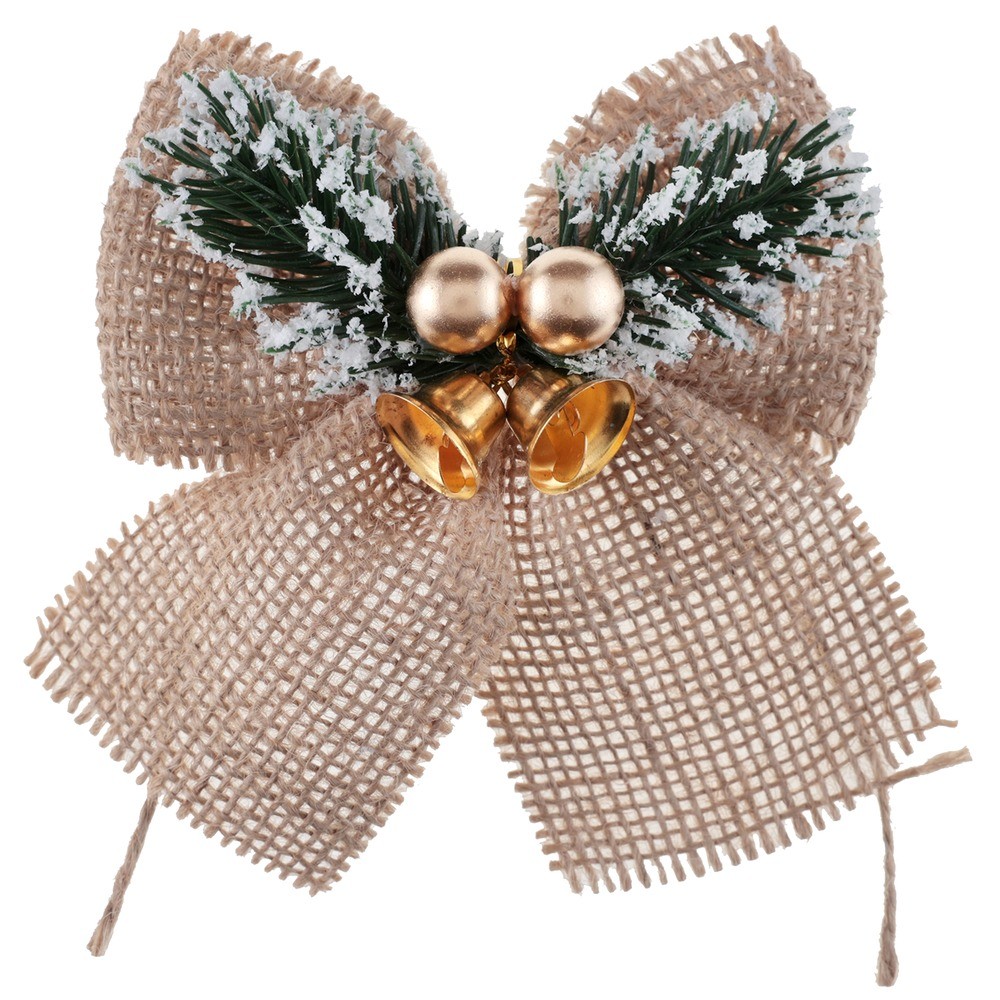 NŒUD JUTE BRANCHAGES GRELOTS 12X12X3.5CM OR