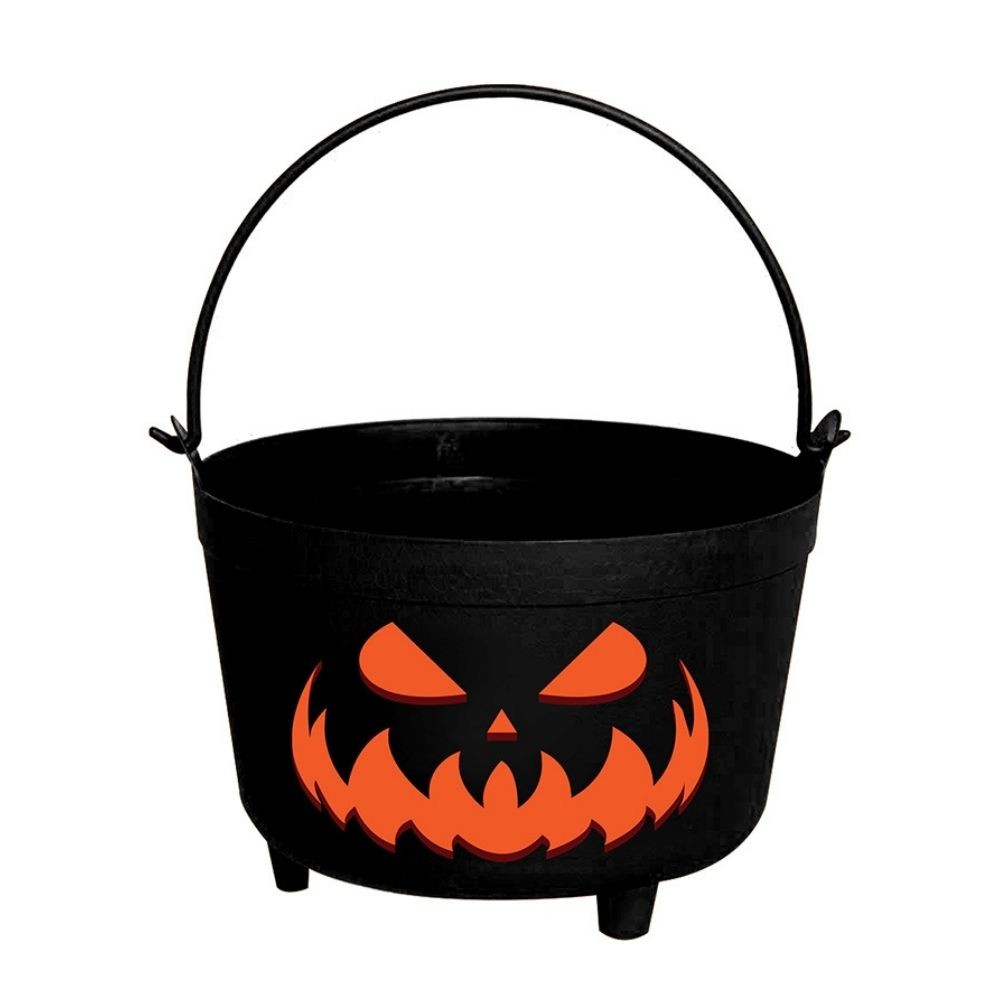 Réf. : ART-084392 Seau réutilisable, en forme de chaudron de sorcière avec visage citrouille maléfique, pour la chasse aux bonbons d'Halloween. Dimensions : 24 x 15 cm. Ce panier terriblement pratique transforme la cueillette en aventure fantastique.