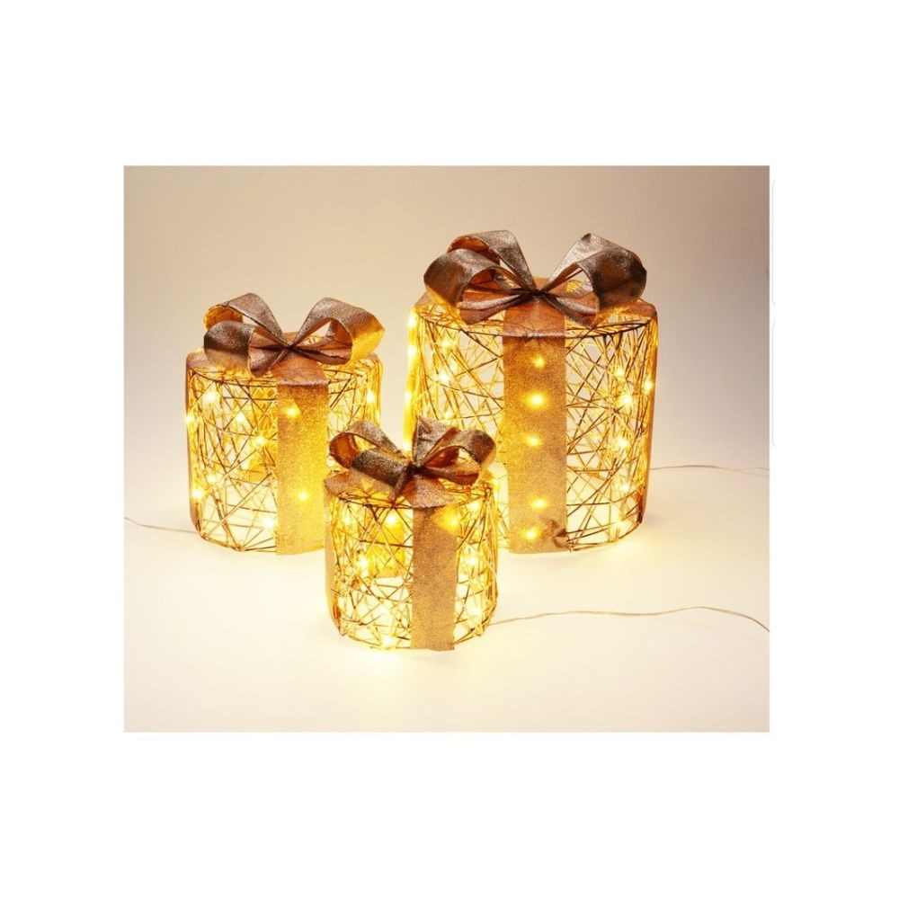Paquet cadeau lumineux cylindrique en métal, comprenant 20 leds blanc chaud, pour un éclat magique. Dimensions : 15 x 15 x 17 cm. Disposé au pied du sapin par exemple, il transforme vos soirées en instants enchantés en attendant Noël. Fonctionne avec 2 piles AA (non incluses). Équipée d'une fonction minuterie pour programmer l'éclairage à la période souhaité durant 6h maximum.