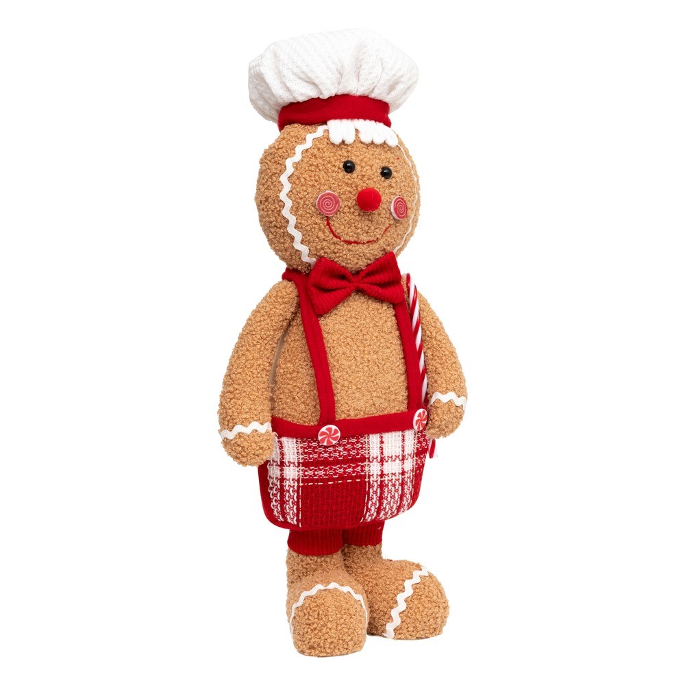 Réf. : ART-084839 Peluche pain d'épices en tissu, adorable compagnon portant une tenue gourmande et festive aux détails soignés, prêt à fondre les c?"urs. Hauteur : 49 cm. Vendu à l'unité. Il existe deux modèles (garçon et fille), envoi aléatoire selon stock disponible si aucune information de préférence transmise. Douce et attendrissante, cette peluche ajoutera une touche sucrée et pleine de tendresse à votre décoration de Noël.
