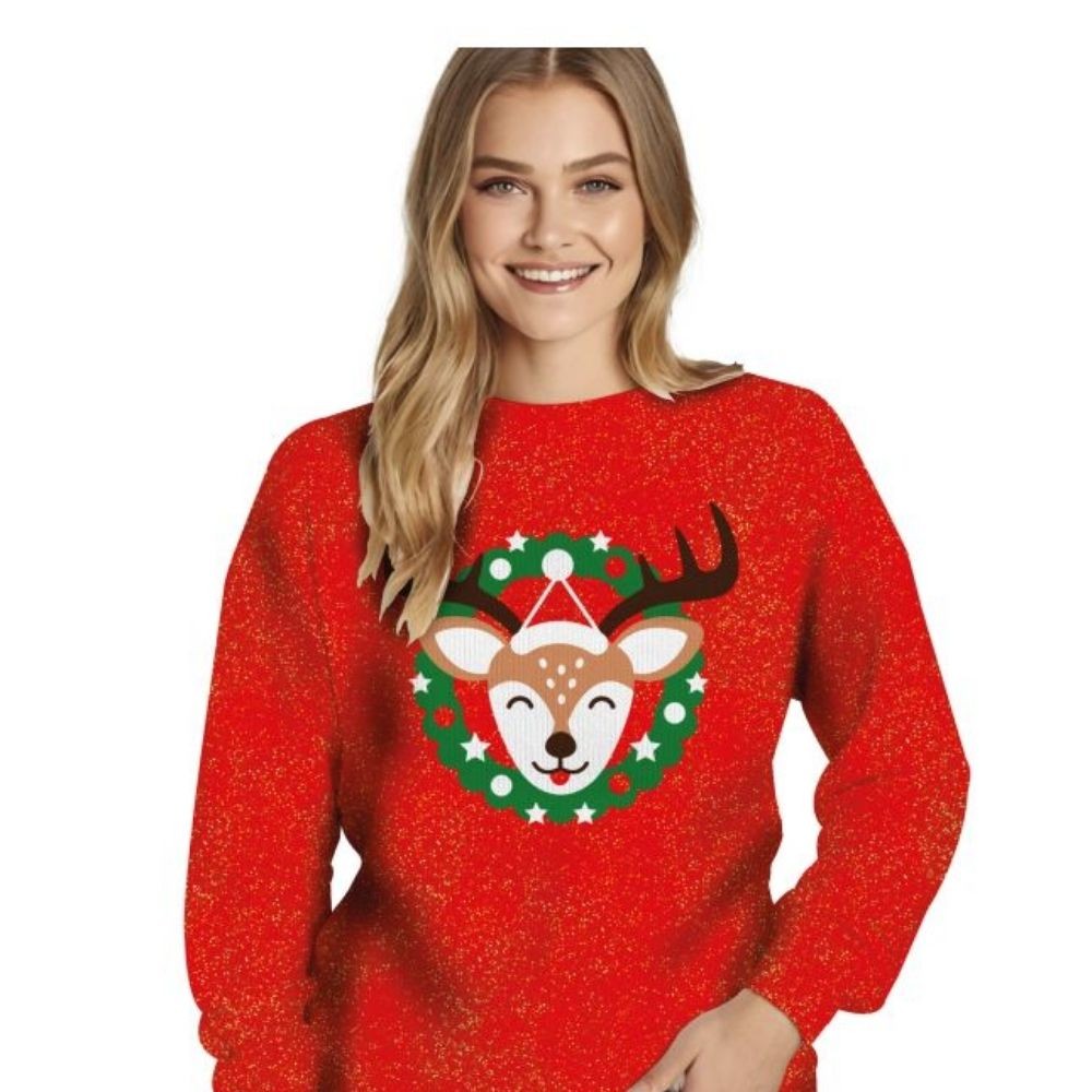 Réf. : ART-085698 Pull rouge éclatant orné d'un adorable renne entouré d'une couronne de Noël afin de plonger dans l'esprit festif. Ses paillettes scintillantes ajoutent une touche de magie à votre tenue, parfaite pour illuminer les fêtes et répandre la bonne humeur. Confortable et plein de charme, c'est le pull idéal pour célébrer Noël avec humour et style.