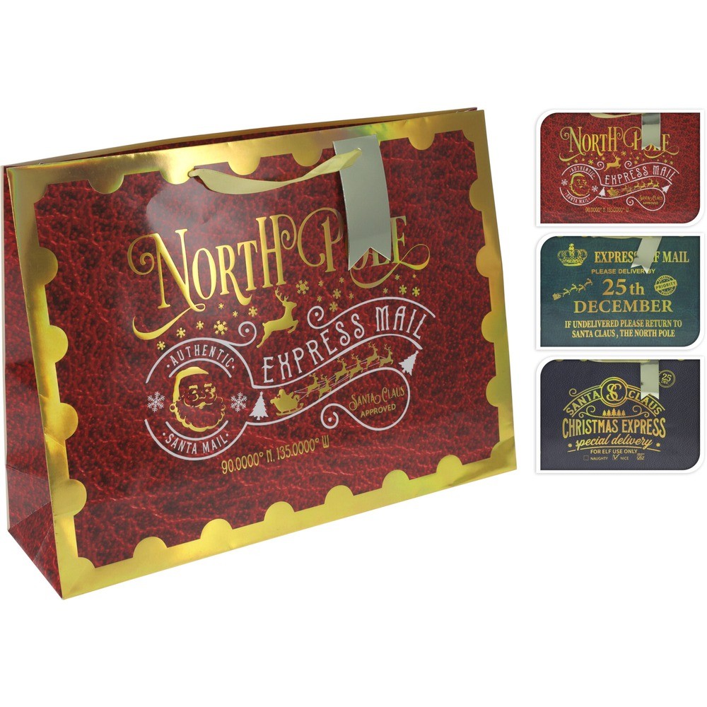 Réf. : ART-085435 Sac cadeau de Noël au format horizontal, en papier 190 g/m² certifié FSC, pour témoigner votre affection. Dimensions : 32 x 26 x 10 cm. Vendu à l'unité. 3 modèles différents existent. Si besoin, merci de nous faire une demande par mail pour indiquer votre préférence. Si le choix n'est pas précisé, nous enverrons de manière aléatoire. Ses couleurs éclatantes et son éclat doré offrent un écrin élégant et joyeux pour sublimer vos présents, apportant une touche magique dès le premier regard.