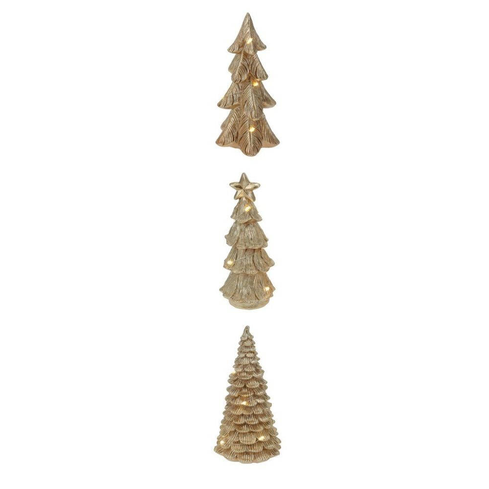 Réf. : ART-085470 Le sapin LED en polystone doré éclaire vos fêtes d'un éclat magique et raffiné. Dimensions : 15,5 x 6,5 cm. Vendu à l'unité. Décliné en trois designs assortis, il diffuse une lumière chaleureuse grâce à ses LED intégrées et fonctionne avec piles incluses. Sa finition dorée et ses détails sculptés en font une pièce décorative idéale pour illuminer vos rebords, centres de table ou vitrines.