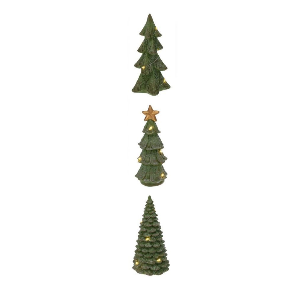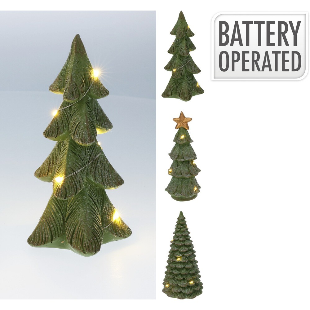 SAPIN POLYSTONE DÉCO LED CHAUD PILE 15.5CM VERT
