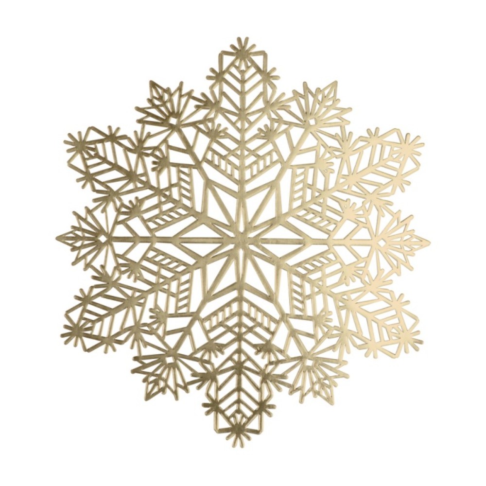 Réf. : ART-084919 Set de table en PVC en forme de flocon de neige de couleur doré mat de 38 cm de diamètre. Apportez une note chic et décalée à votre décoration de table à l'occasion des fêtes de Noël avec ce set de table original.