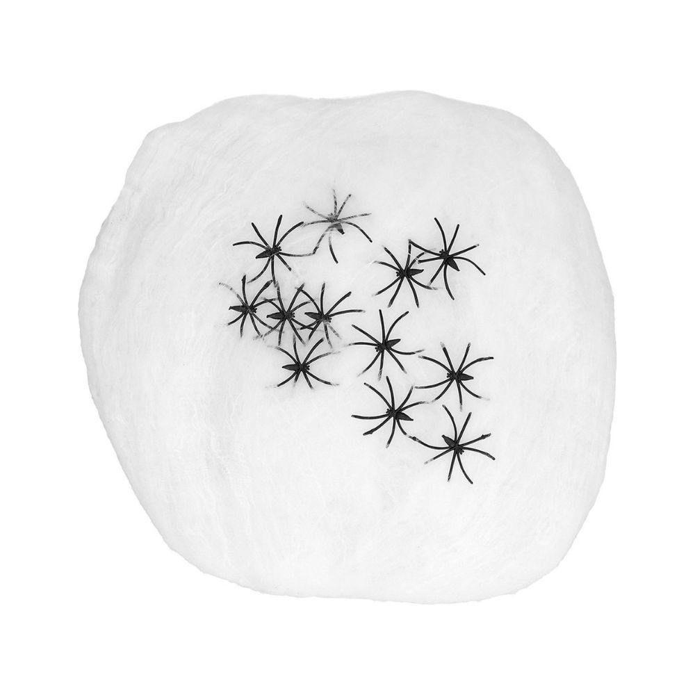 Réf. : ART-085534 Toile d'araignée de haute qualité de 500grs blanche avec 25 araignées en plastique. Idéale pour parfaire vos décors de salle, de table ou pour laisser pendre sur le coin d'une porte. Très extensible.